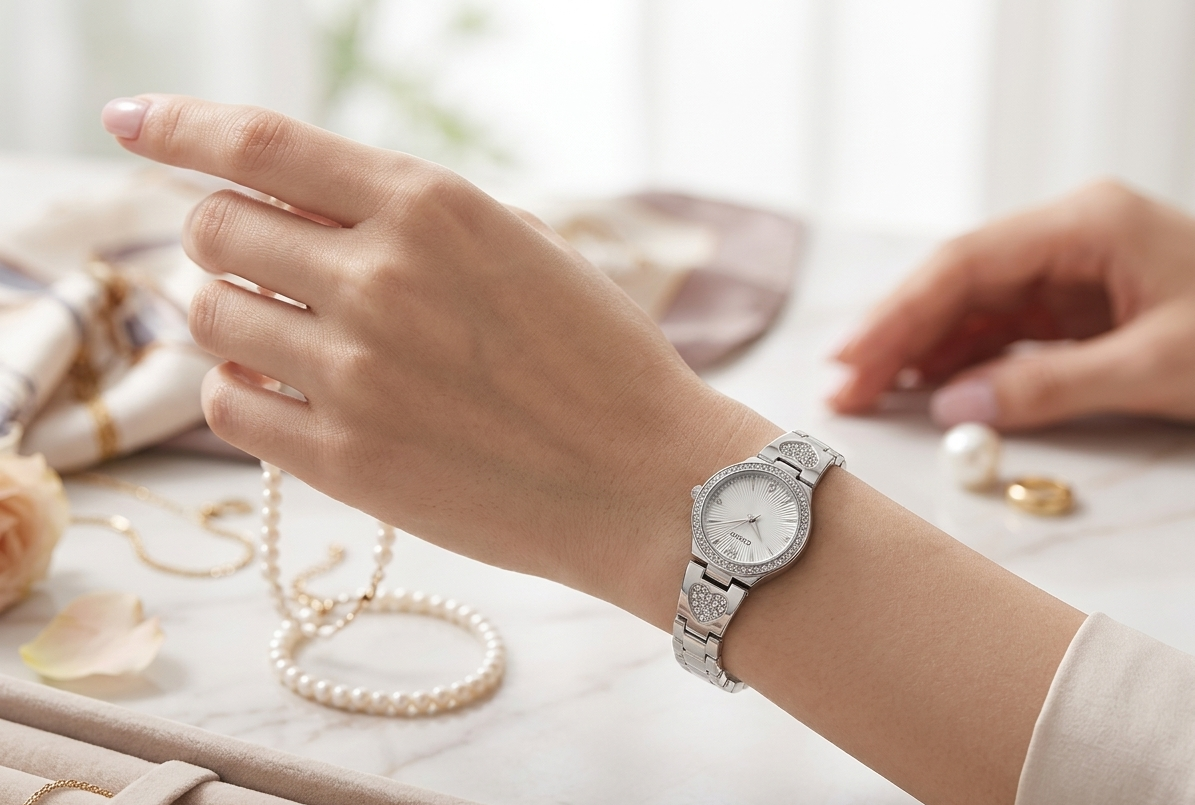Starlight Silver Watch with a clean silver design and light sparkle details. Simple, stylish, and easy to wear every day or on special occasions.